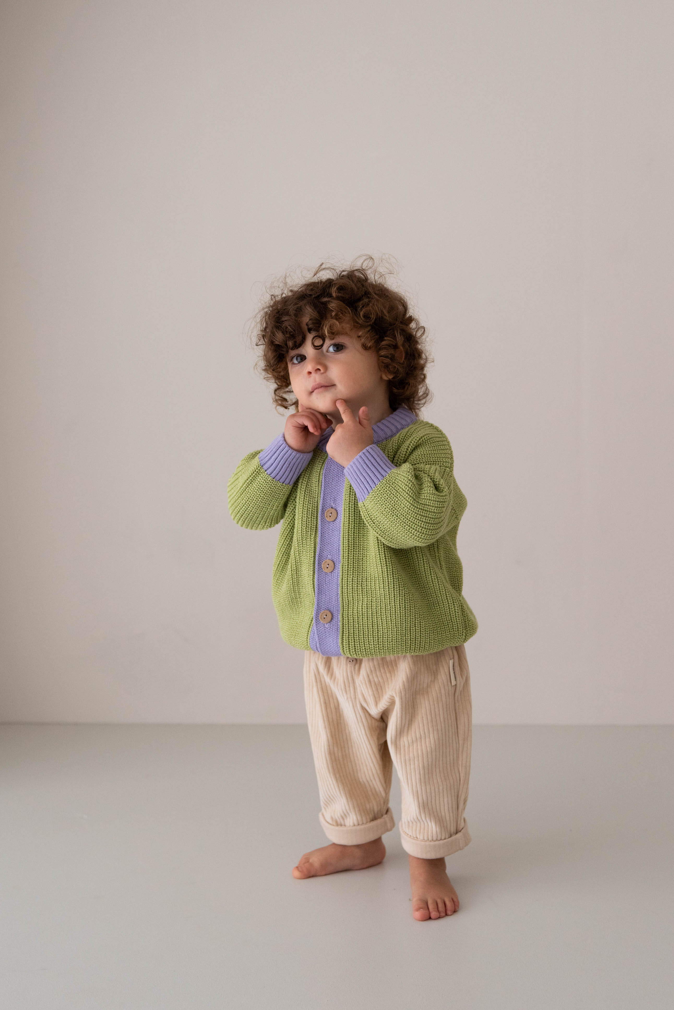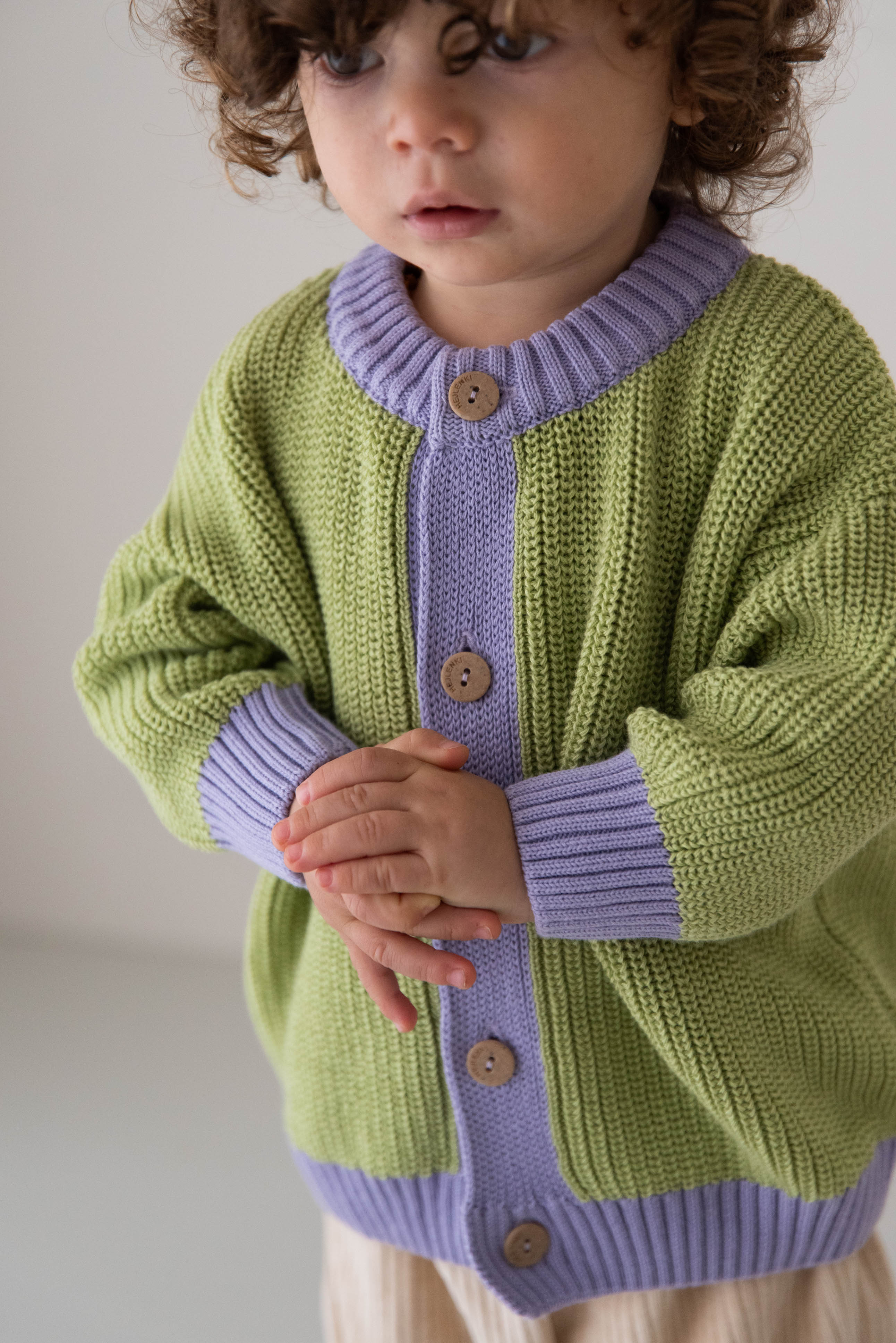 CHUNKY KNIT CARDIGAN LIME LAVENDER